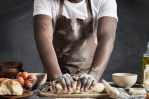 A comparison showing manual dough mixing versus an efficient commercial dough mixer from Afess Nigeria.